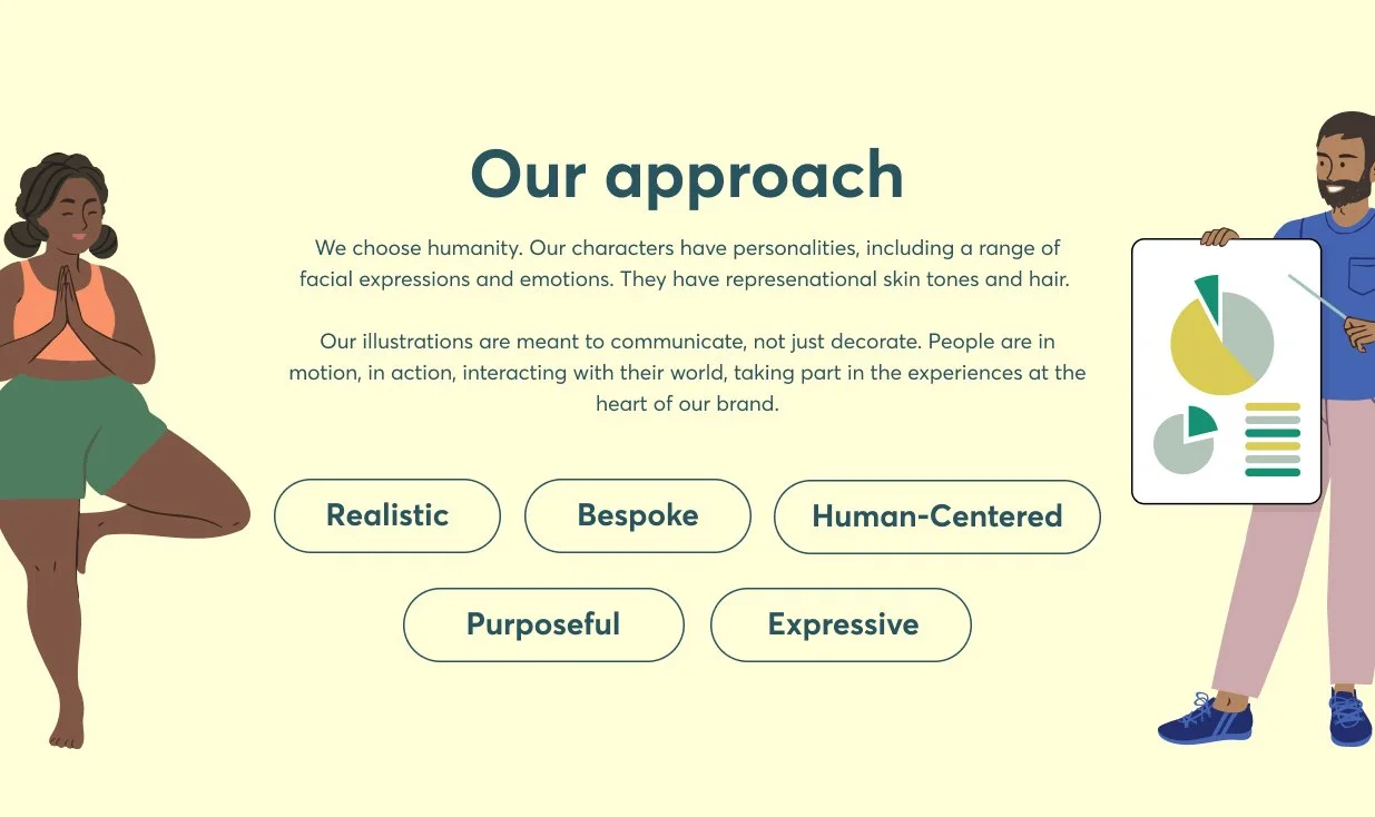 After I had populated the library with enough illustrations for creatives to hit the ground running, the next step was to onboard all of the internal design teams. I hosted a few workshops where I presented a deck explaining the evolution and process of this system and discussed the guides you see here step by step. All the designers then had time to pressure test the library in the workshop by making their own net new assets.