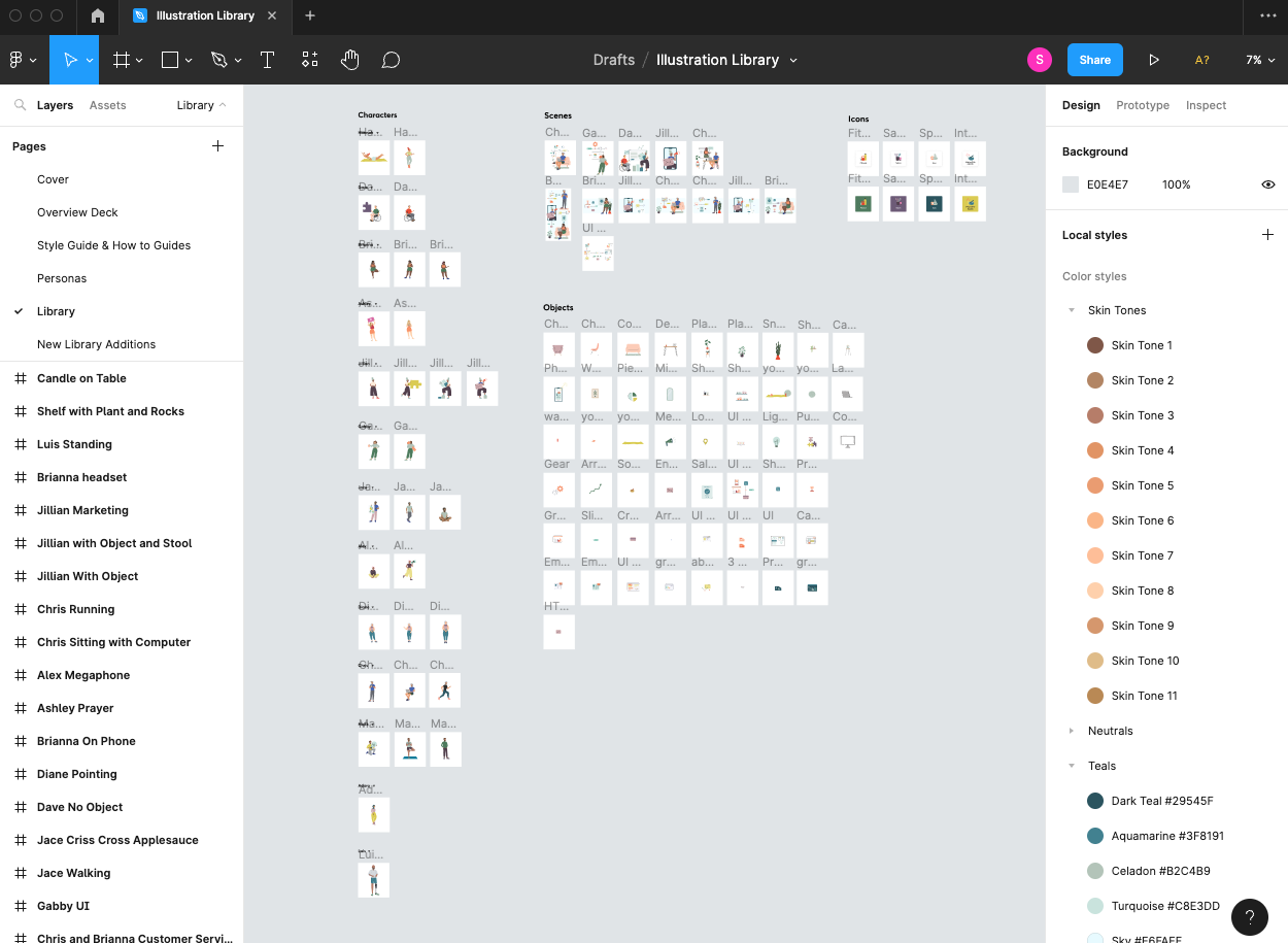 Creating the library in Figma gave me the ability to easily share out the design system and color library. The illustrations can be fully customized and recolored to suit each designer’s needs.