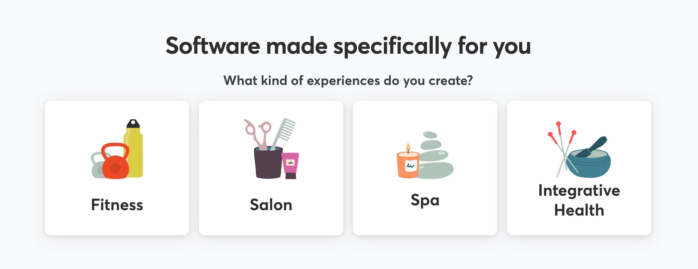 The illustration system was quickly put to use and applied to the new business homepage. I was tasked with concepting and illustrating the main section of the page that outlined the key value propositions of the software. Along with designing and illustrating the icons that a user would select to self-identify.