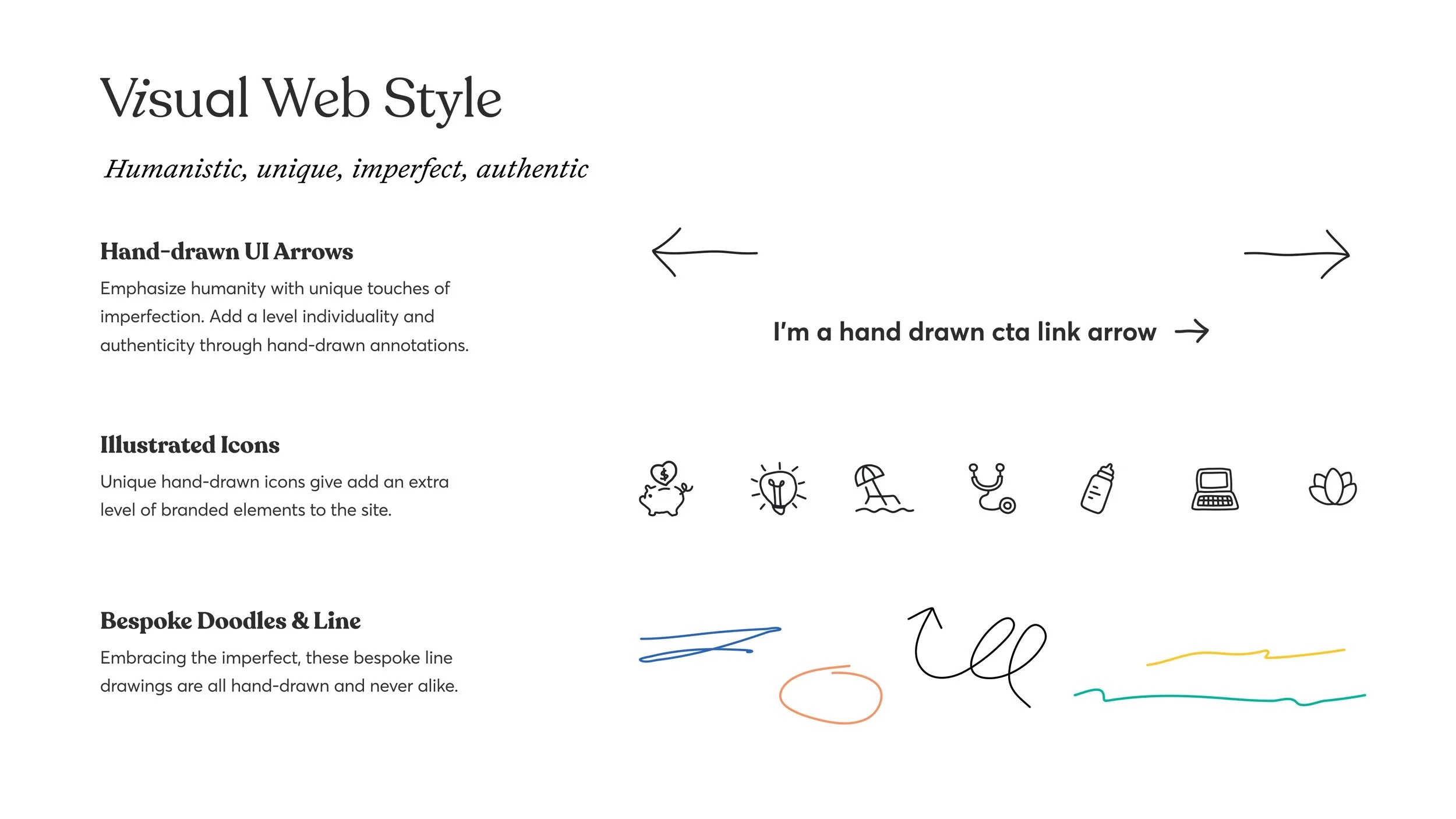 This page gave me the opportunity to build off the new brand system, adding bespoke hand drawn UI elements and icons that fit within the new style.