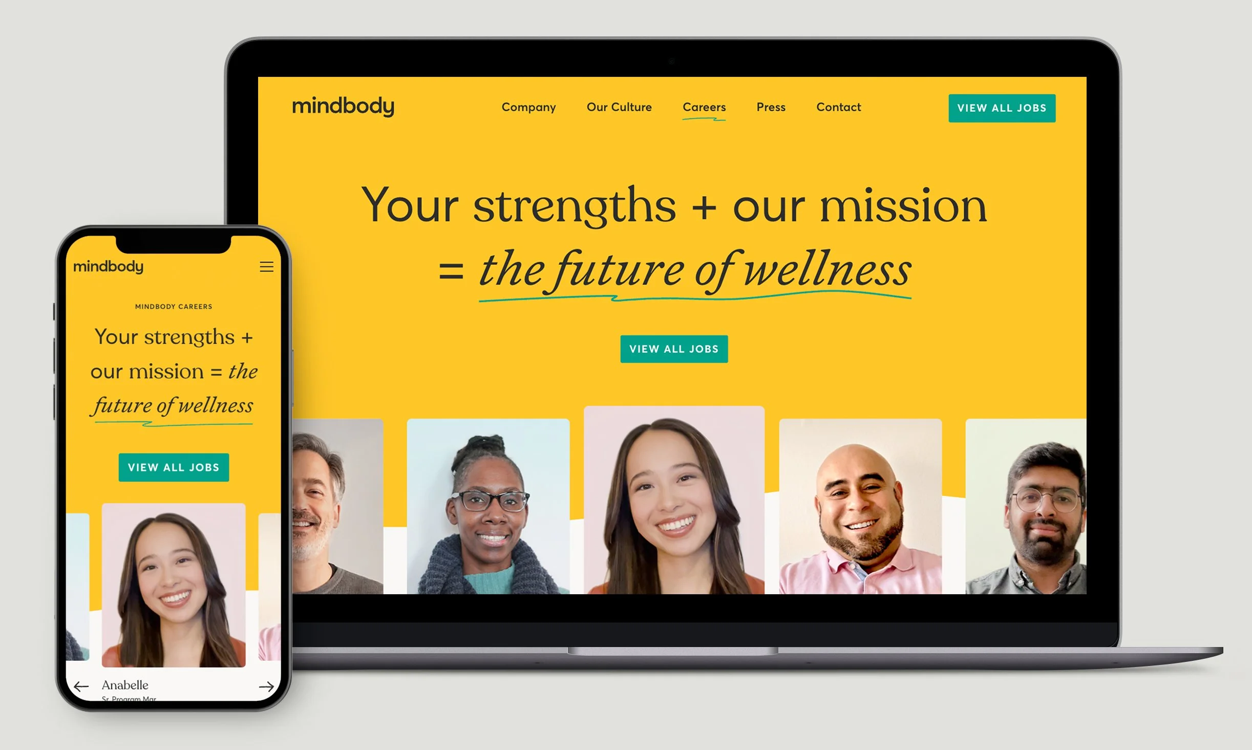 Mindbody is a global SaaS company that provides cloud-based online scheduling and business management software. The goal of this rebranding project was to strengthen the consistency of the brands visual identity, highlight the company’s approachable voice and tone, and to make quality first impressions with prospective employees—impressions that better communicate their values, mission, and company culture.